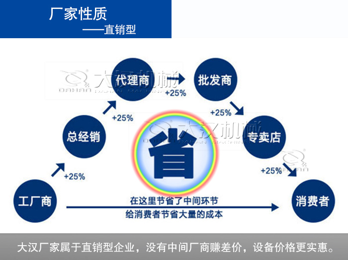 大漢廠家屬于直銷型企業,研發、生產、銷售、維修等一系列流程都是由廠家獨立承擔,沒有中間廠商賺差價,因此設備價格都更加真實、公開、公正,不會有欺騙用戶現象出現。