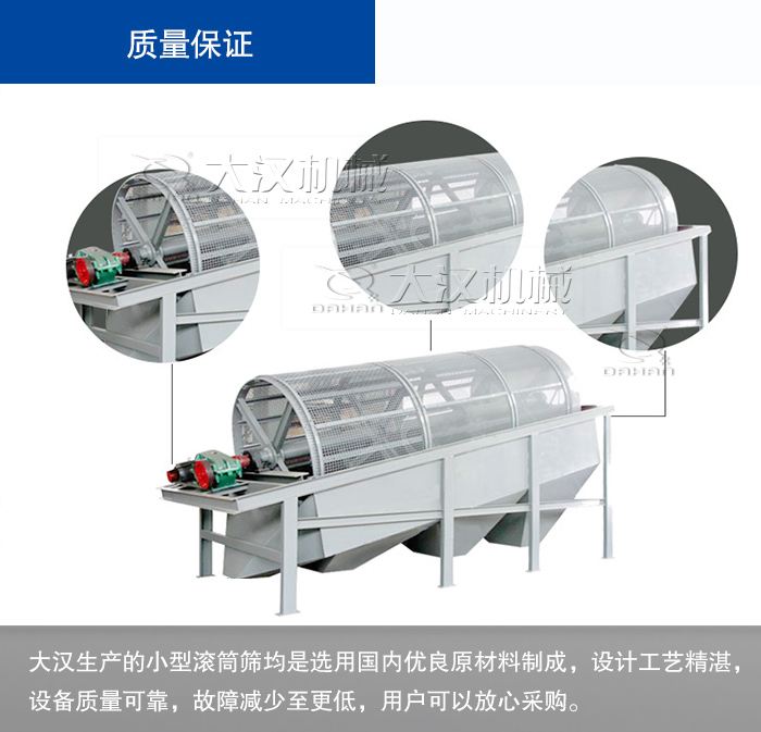 小型滾筒篩多少錢?大漢公司為您報價,大漢滾筒篩新價格:8000元—54000元。購買小型滾筒篩哪里實惠,還是建議您來新鄉大漢,主要原因如下:
