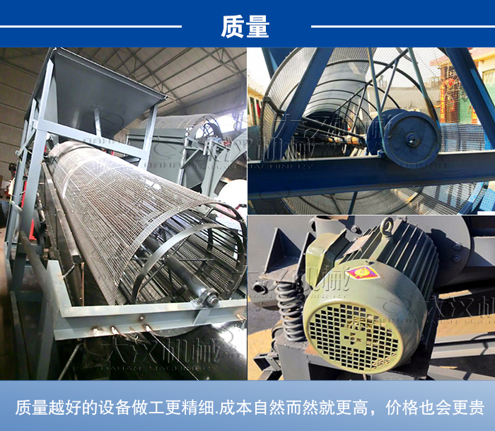 3、大漢移動式滾筒篩采用易損件均采用較高的耐磨材質,要比以往設備的使用壽命高于1.5倍,并且設備質量已經通過ISO國際質量體系認證和歐盟CE認證,用戶可以放心選購。