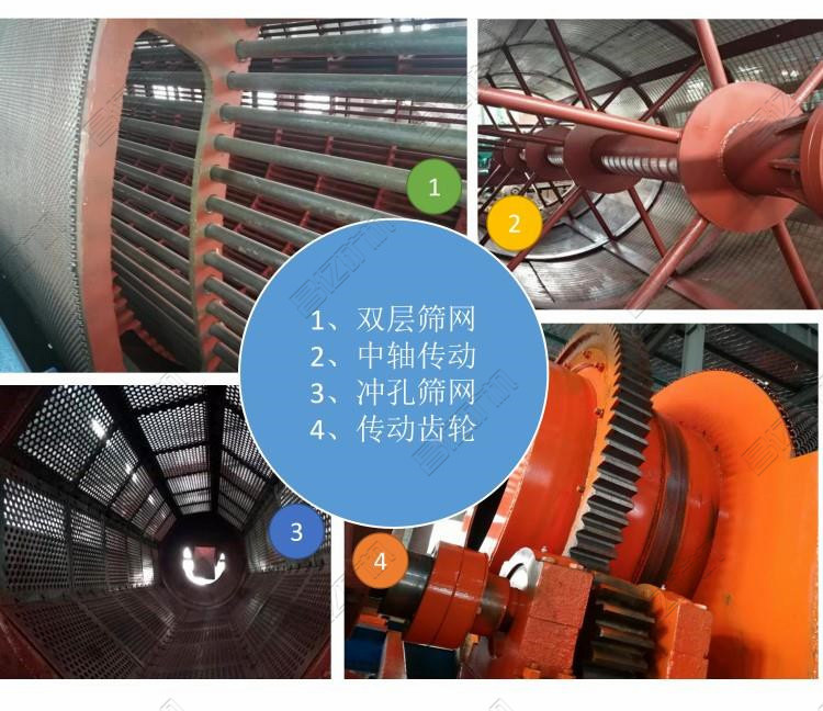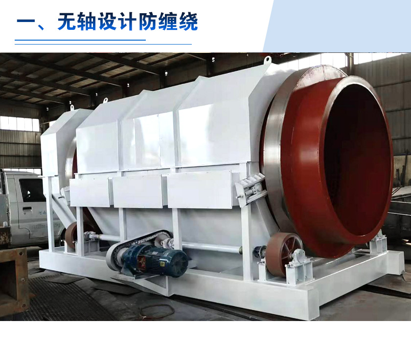 滾筒篩能夠篩分不同的濕料和干料,在生活垃圾分選中一般選擇的是無軸滾筒篩,其主要優勢如下: