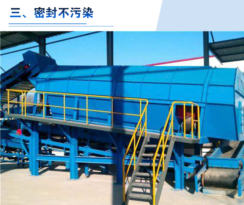 無軸滾筒篩篩筒安裝經過機體密封,從而保證設備在工作中,有效避免生活垃圾外逸,從根本上減少了生活垃圾對環境的污染。