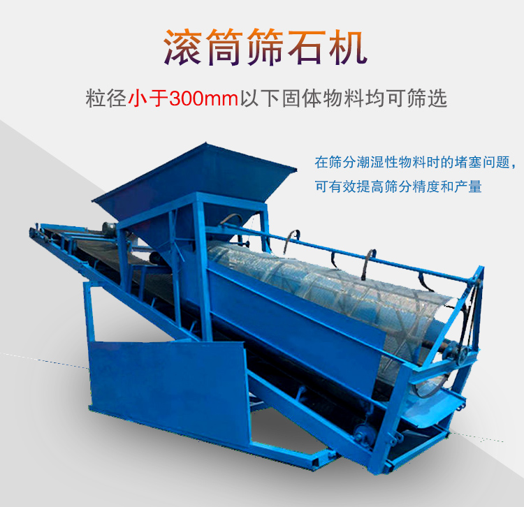 滾筒篩石機主要是針對砂石料場、礦山、冶金、建材、公路、鐵路、水利、化工等多個行業(yè)中大塊狀物料的大小等級,粒徑小于300mm以下固體物料均可篩選。滾筒篩石機克服了振動篩在篩分潮濕性物料時的堵塞問題,可有效提高篩分精度和產(chǎn)量。
