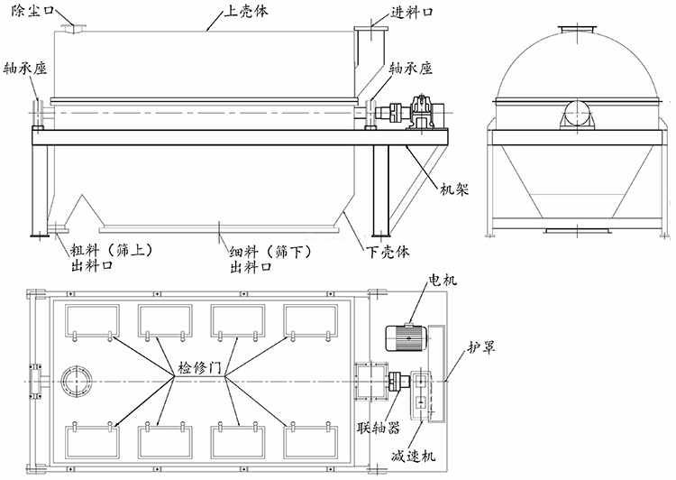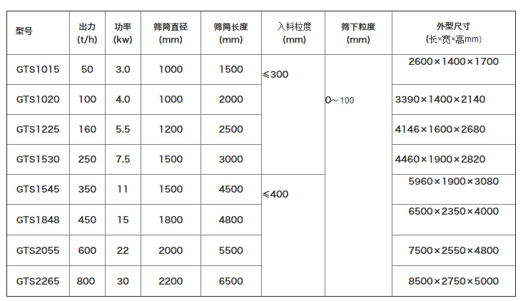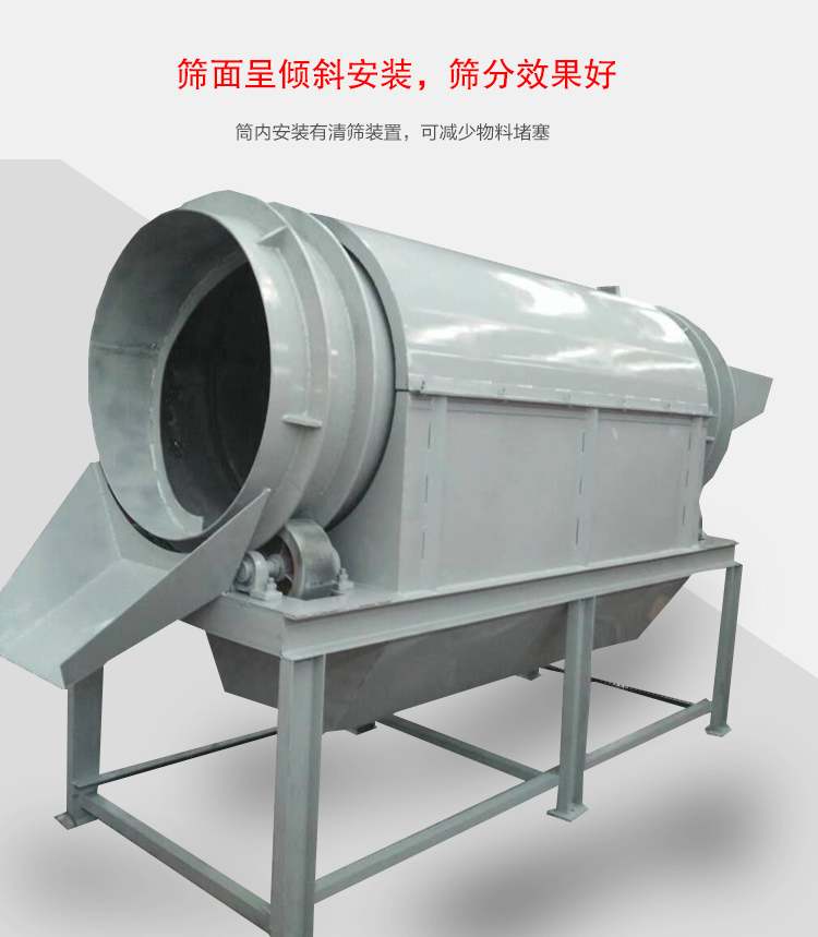 1、采用滾筒篩分原理,物料在篩分過程不停地翻轉,物料不易堵塞。